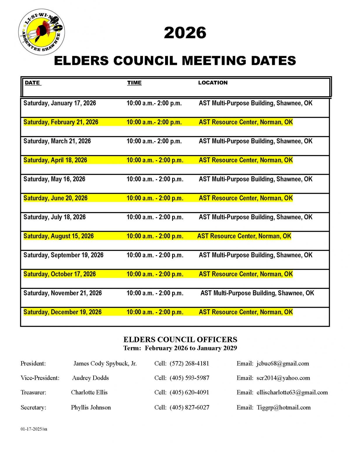 AST ELDERS COUNCIL MEETING SCHEDULE