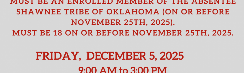 MUST be an enrolled member of the Absentee Shawnee Tribe of Oklahoma (on or before November 25th, 2025).