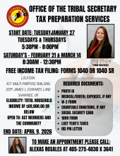 The Executive Committee of the Absentee Shawnee Tribe of Indians of Oklahoma, in accordance with the Constitution, Article XVI, Section 4, “Executive Committee Meetings” here by calls and declares public notice that the REGULAR meeting of the Executive Committee of the Absentee Shawnee Tribe of Indians of Oklahoma has been scheduled for Wednesday January 21, 2026 at 10 AM at the Absentee Shawnee Tribal Complex in Shawnee, Oklahoma.