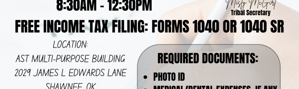 The Absentee-Shawnee Tribe: Office of the Tribal Secretary is once again offering FREE VITA Tax Prep Services to the public.