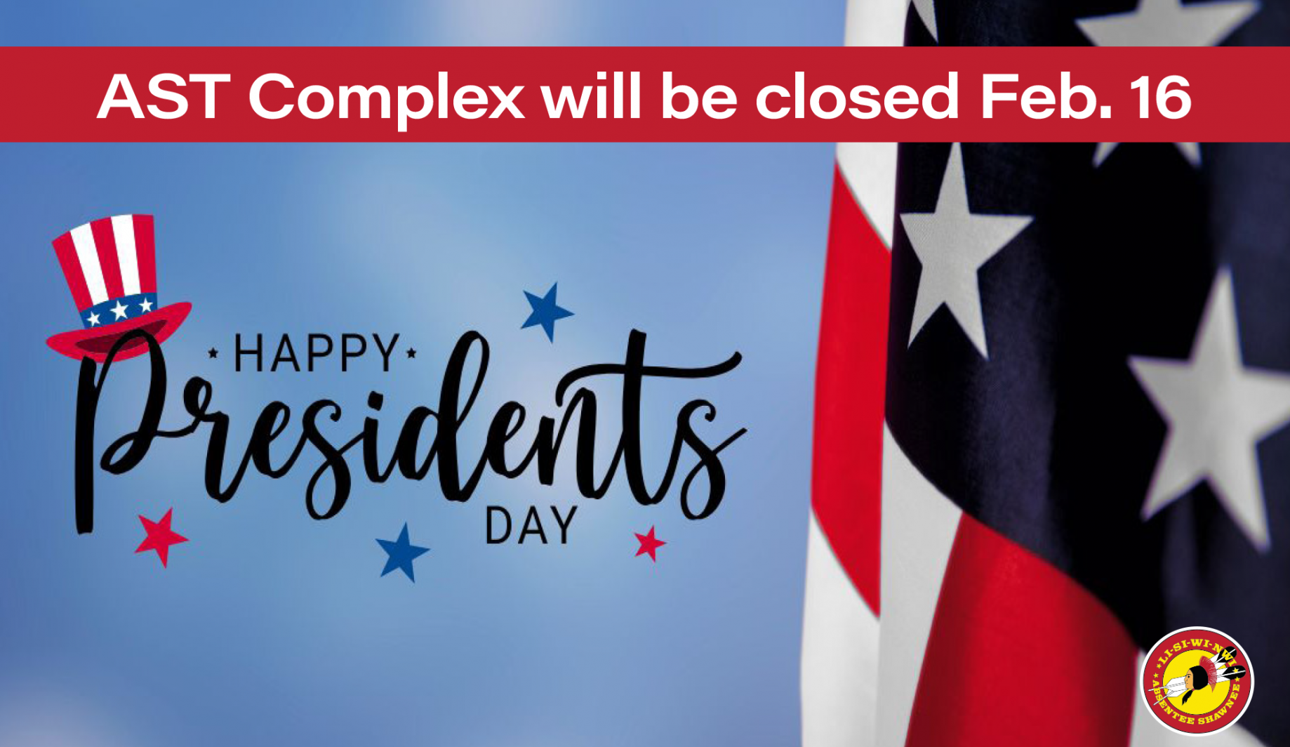 Due to inclement weather and road conditions, the AST Complex will be closed TOMORROW, Tuesday, February 16th. ALSO, the REGULAR EXECUTIVE COMMITTEE MEETING scheduled for Wednesday, February 17th will be rescheduled.