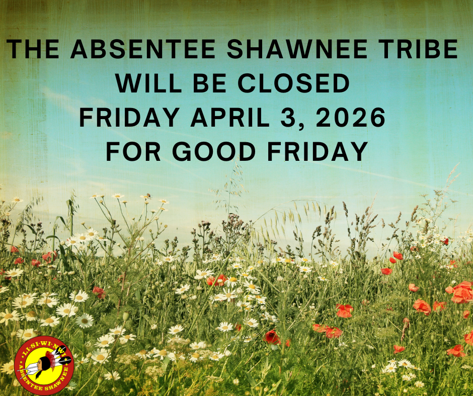 The Absentee Shawnee Tribe will be closed Friday, April 3 2026 for Good Friday.