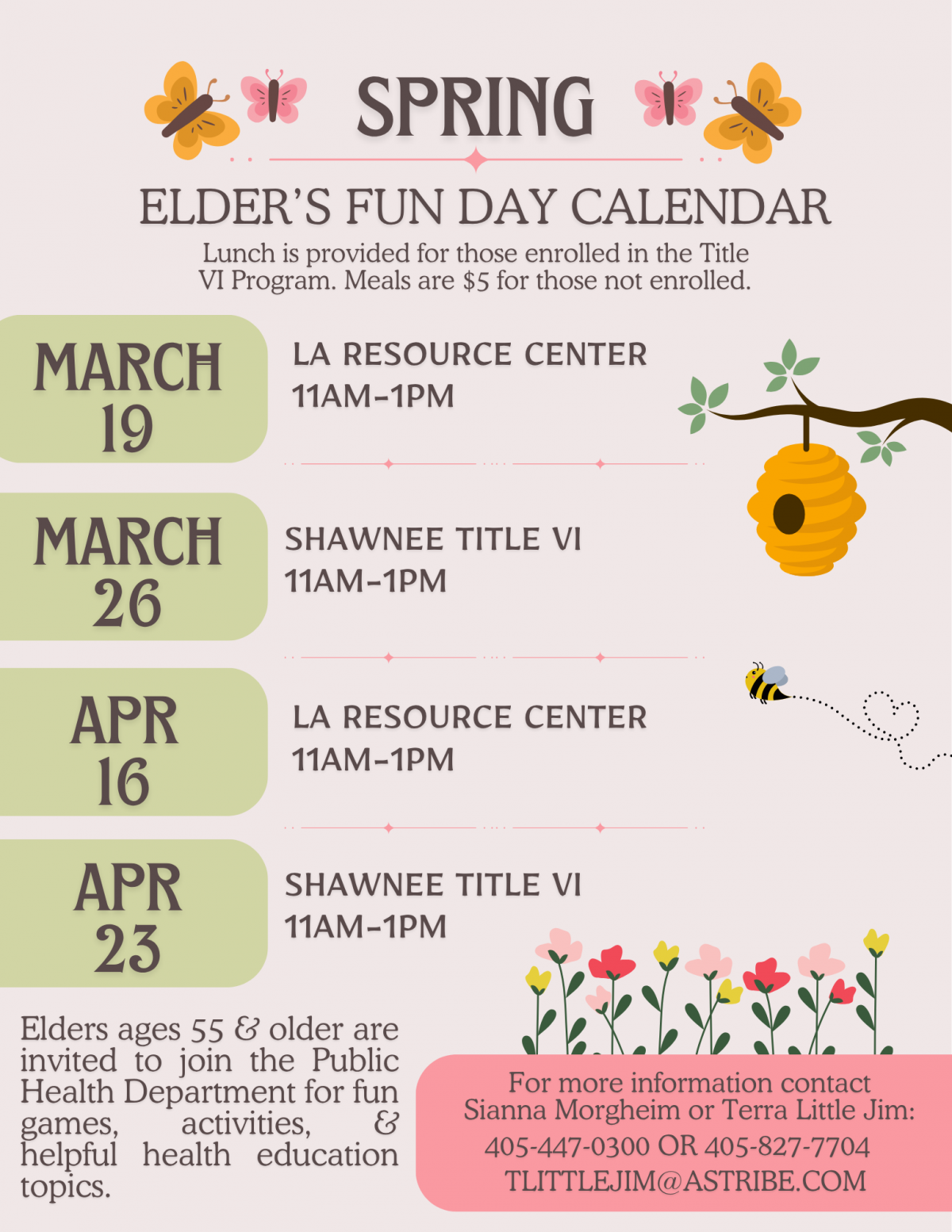 Elders ages 55 and older are invited to join the Public Health Dept for fun, games , activities and helpful health education topics.