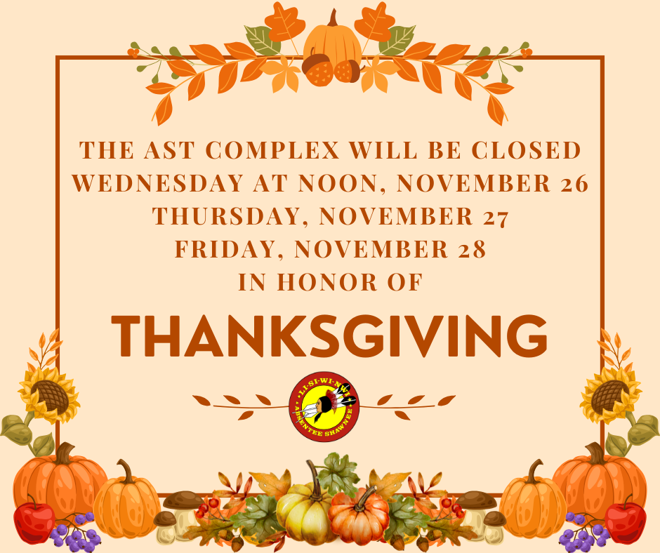 The AST Complex will be closed Wednesday November 26 at noon